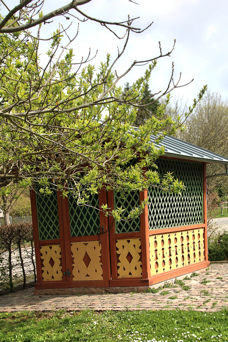 Diese Miniaturausgabe eines griechischen Tempels wurde um 1900 im Garten der Familie Wild in der Haller Straße 7 gebaut.